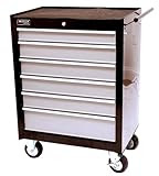 Homak SE Series 27" 6 - Drawer Rolling Tool Cabinet moves easily from job to job. Spacious and easy to use. Why make trips back and forth to the work bench for tools when you can wheel them to your project? Get this 6-Drawer Rolling Tool Cabinet and make your work easier. It has 6 drawers with ball bearing glides that support 75 lbs. per drawer, and it rolls smoothly on four casters. Check it out: Push handle for easy maneuverability; EVA mats in all drawers; Full-length aluminum drawer handles; 5" x 2" heavy duty casters can hold up to 560 lbs.; HMC security tubular locks with exclusive key codes for added security; Metal thickness: 0.8 mm in body; 0.7 mm in drawers; 3.2 mil epoxy powder-coated paint; Measures 27 x 18 x 37" h (overall); weighs 102 lbs.; 3-year limited warranty; Order Today! Please Note: This item is shipped by commercial carrier curbside. Unloading is the customer's responsibility, including off the back of the truck. Ships in 1 box: 37" x 27" x 18", 102 lbs. No expedited delivery. High-value orders require a physical street address, otherwise insurance costs will be added to the shipping total. Homak SE Series 27" 6-Drawer Rolling Cabinet, Black / Gray Ball-Bearing Glides Tubular Locking Mechanism Slip Proof Mats 5" x 2" Casters Push Handle